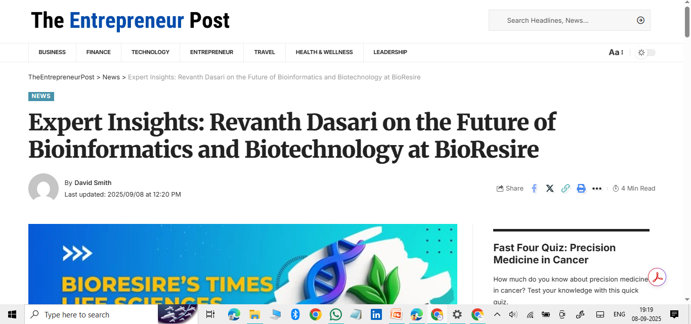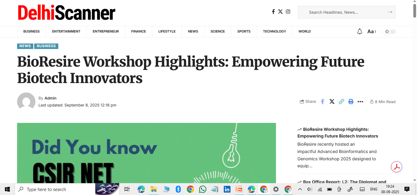 Looking ahead, BioResire Research Labs aims to expand collaborations with global universities and research organizations, launch new skill-based certifications in cutting-edge fields like AI in biology, computational drug discovery, and advanced proteomics, provide scholarship-based internships to deserving candidates, and strengthen its position as a leading life sciences e-platform in India and beyond.
