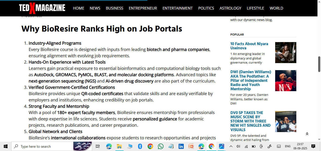 “Bioresire Research Labs proudly welcomes over 1,000,000 visitors annually — both from India and around the world. Yes, you heard that right — it’s real, and it’s a reflection of the trust we’ve earned from students, researchers, and institutions globally. Our platform has become a go-to destination for life sciences education, internships, and research-driven skill development. Whether you’re exploring cutting-edge bioinformatics tools, enrolling in certified training, or participating in our industry-focused workshops, you’re part of a thriving community that’s growing every single day.”